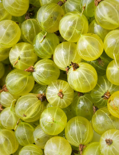 Termése:fehér erezetű, sárgászöld, nagyméretű gyümölcse éretten a nap felé néző oldalán kissé pirosan márványozott. Héja bársonyosan molyhos, amin homályosan áttetszenek a magvak. Termése üdítően savanykás, fűszeres ízű. Bokra sűrű koronájú. fürtvirágzatából 1-3 bogyó fejlődik.Viszonylag későn,július elején,közepén érik.Bőven terem.